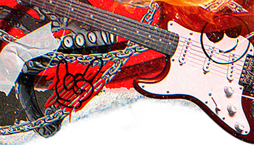 일렉트릭 기타의 일그러진 사운드가 바톤을 이어받습니다